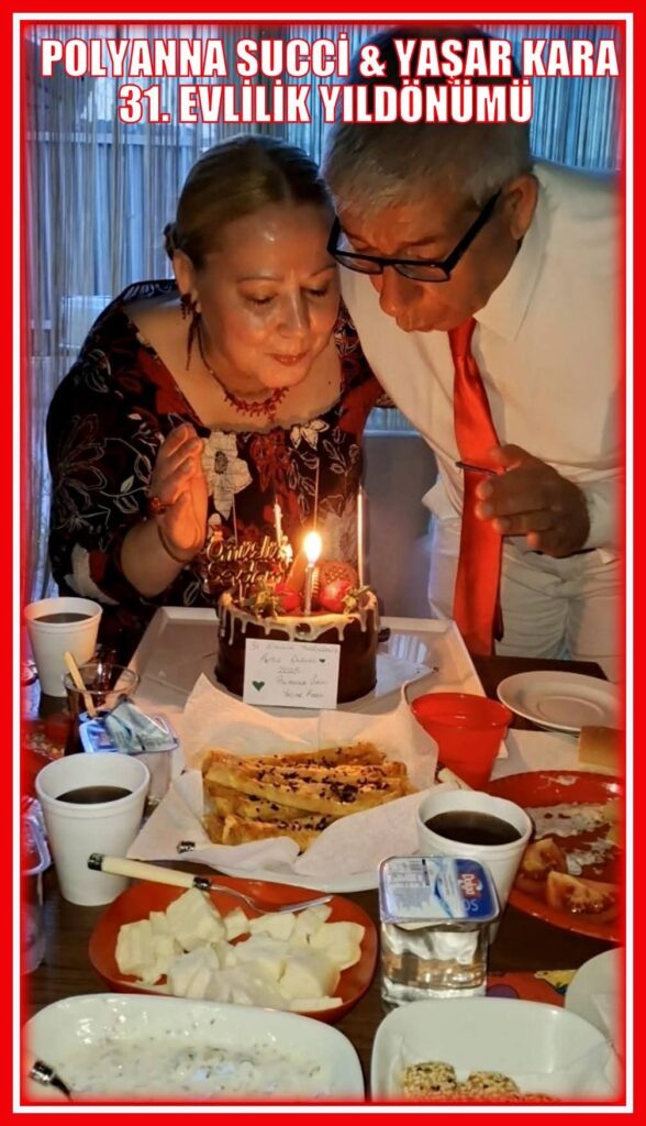 Bu arada, Polyanna Succi & Yaşar KARA çiftinin bu mutlu Yıldönümlerinde aile büyüklerinden Toros Federasyonu Genel Başkanı Cenap EROL, üzerinde daha nice nice mutlu yıllara inşallah temennisi yazılı güne özel bir Orkide Çiçek göndererek kutlar iken, yakın aile dostlarından Çiğdem DİKMEN ise Üzerinde 31.Mutlu evlilik yıldönümü yazılı yaş pasta göndermesi de kutlamaya önemli bir renk kattı.